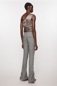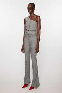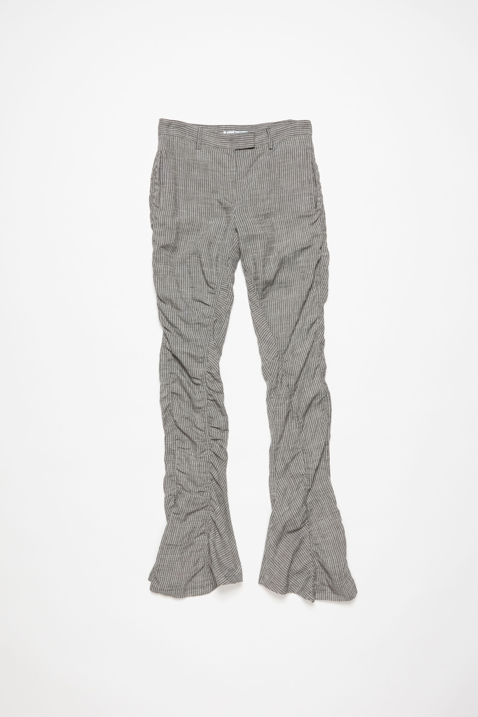 Fluid trousers are cut to a fitted fit with mid waist, fitted bootcut leg and long length. Crafted from a linen blend with pinstripe animation and creased seams. - Fitted fit - Mid waist - Fitted bootcut leg - Long length - Pinstripe - Creased seams - Front pockets - Model is 181 cm / 6' and wears a size 36 - Style ID: FN-WN-TROU001217 - Shell: 60% Linen, 26% Viscose, 14% Polyester, Pocket Lining: 95% Cupro, 5% Elastane