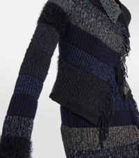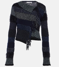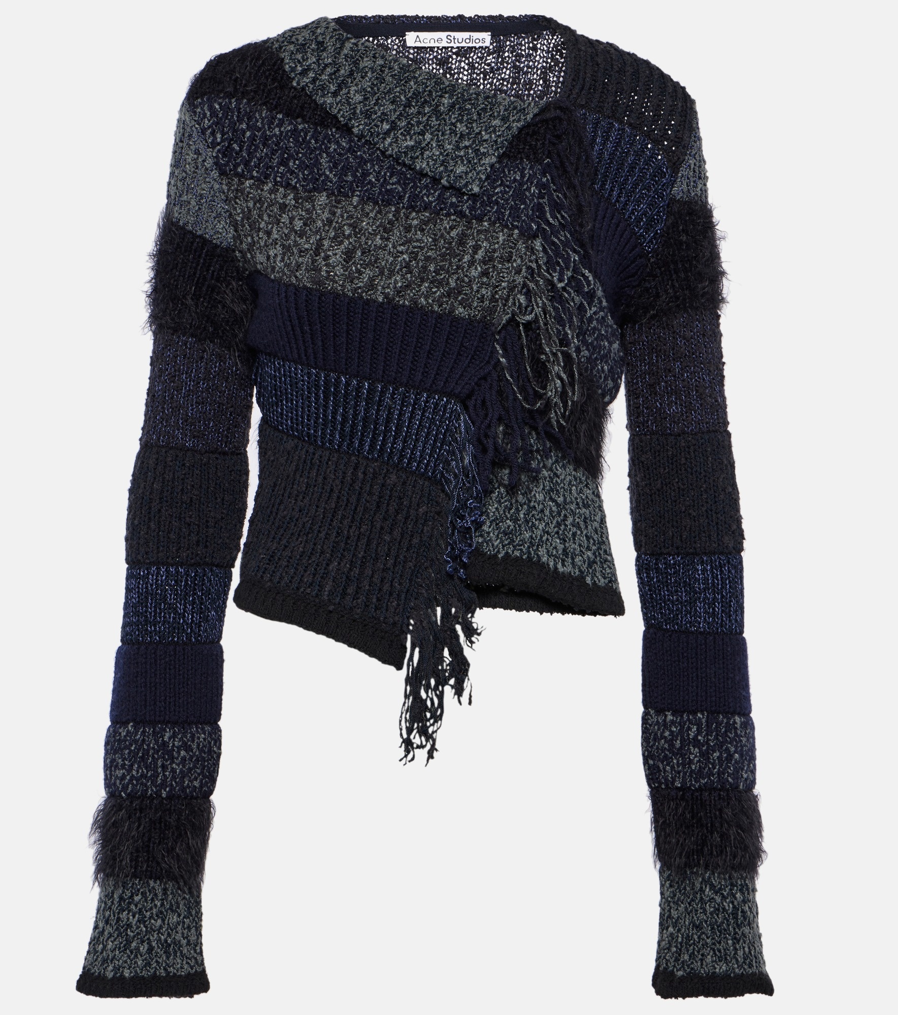 This blue-toned sweater from Acne Studios is meticulously crafted from an Italian blend of cotton and wool. Enhanced with broad stripes and delicate fringe accents, it boasts a waist-length fit for added style. Product Details - Material: 51% cotton, 29% wool, 10% polyamide, 10% viscose - Care instructions: hand wash - Made in Italy - Designer color name: Ink Blue - Item number: P00843826 Size & Fit - True to size - Cinched waist - Mid-weight material - Slightly cropped - The model seen in the picture is 178cm-5'10" and wearing a size XS
