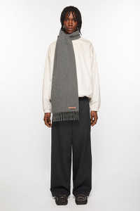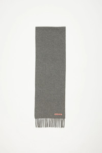 Fringed scarf is detailed with a pink Acne Studios label and crafted from midweight wool. - Fringed ends - Midweight wool - Pink Acne Studios label - Measurements including fringe: 190 cm x 28 cm - Fringe measurements: 7 cm approx. - Made in Italy - Style ID: FN-UX-SCAR000219 - Made with responsible wool. - Shell: 100% Wool