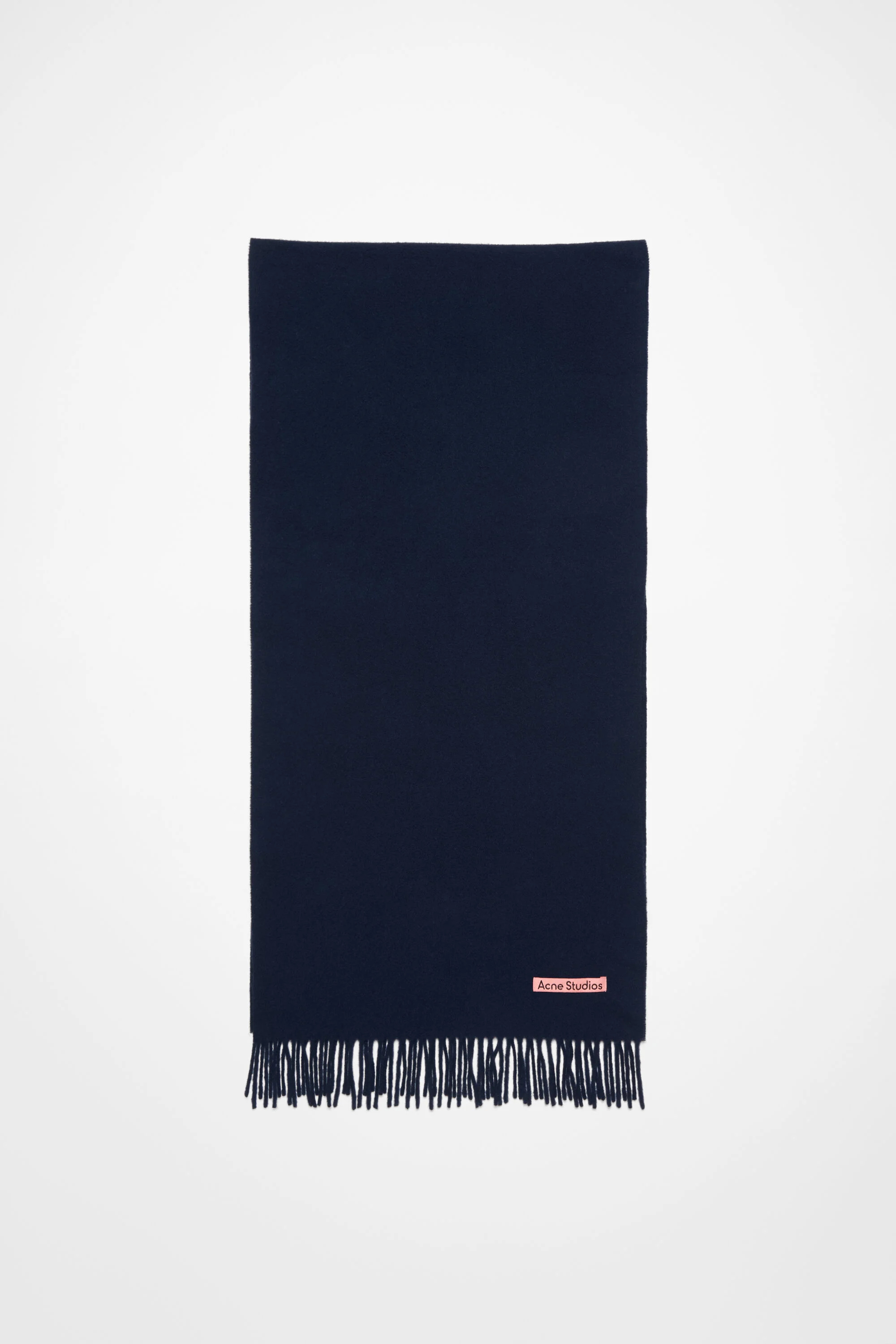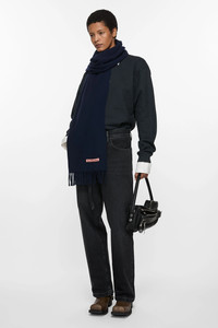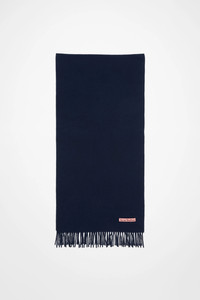 Acne Studios dark navy fringed scarf is detailed with a pink Acne Studios label and crafted from midweight wool. - Fringed ends - Midweight wool - Pink Acne Studios label - Measurements including fringe: 200 cm x 45 cm - Fringe measurements: 10 cm approx. - Made in Italy - Style ID: FN-UX-SCAR000218 - Made with certified wool according to the Responsible Wool Standard. Certified to the Responsible Wool Standard (RWS) by Control Union, license number CU-1024001 - Shell: 100% Wool