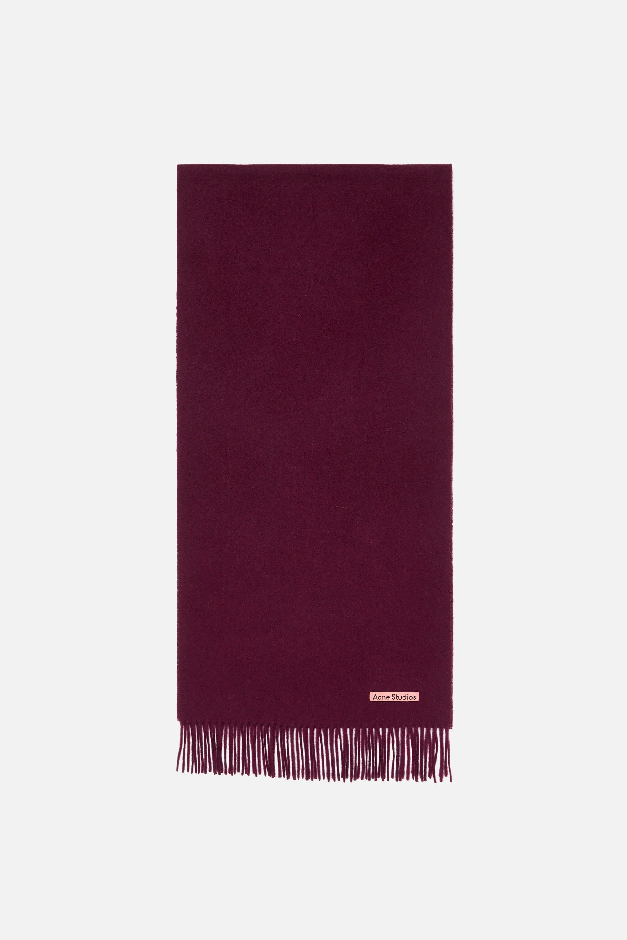 Fringed scarf is crafted from midweight wool with a soft hand-feel, detailed with a pink Acne Studios label. - Fringed ends - Midweight wool - Pink Acne Studios label - Measurements including fringe: 200 cm length; 45 cm width - Fringe measurements: 10 cm approx. - Made in Italy - Style ID: FN-UX-SCAR000218 - Certified to the Responsible Wool Standard (RWS) by Control Union, license number CU-1024001 - Shell: 100% Wool