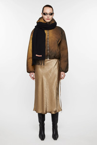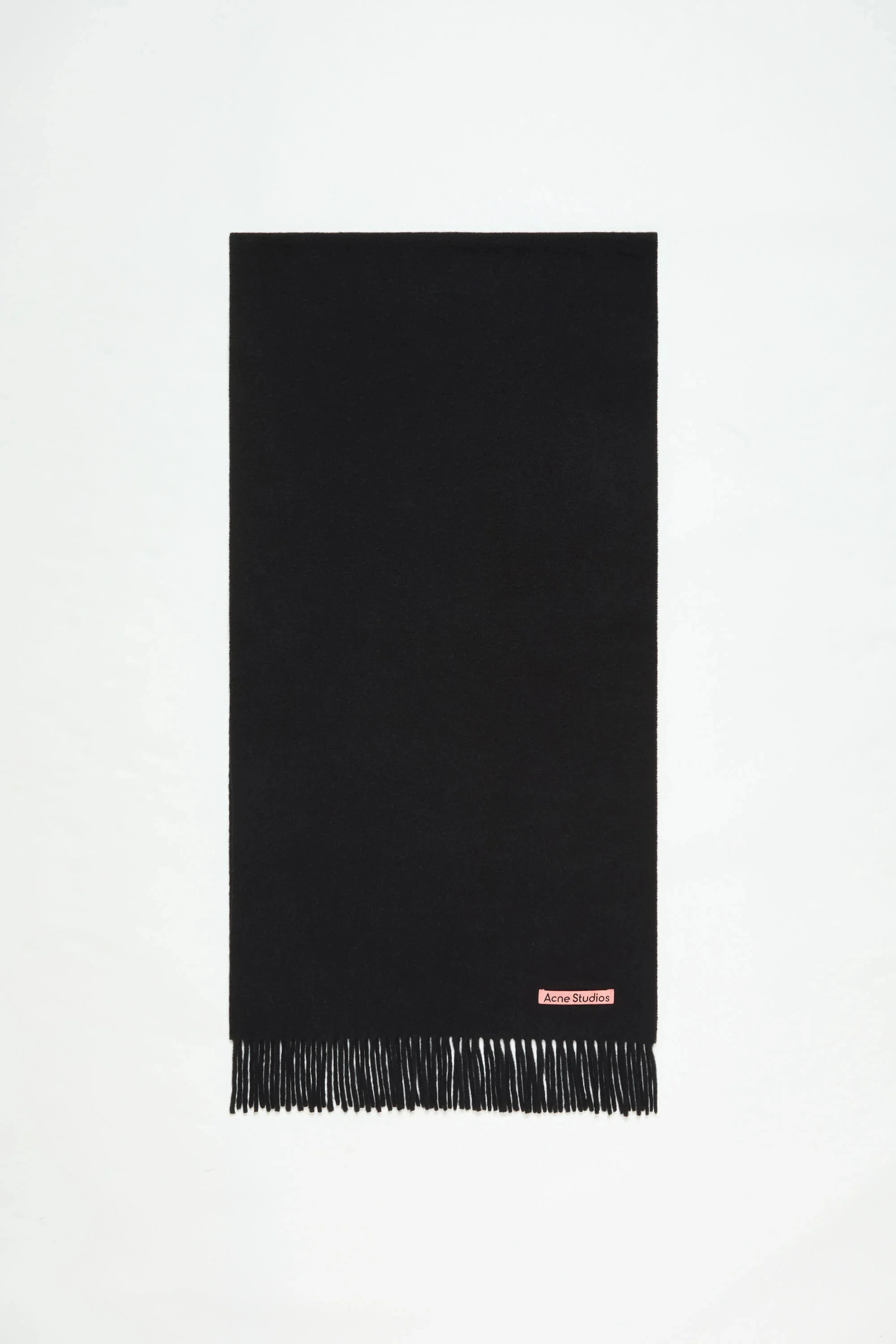 Fringed scarf is crafted from midweight wool with a soft hand-feel, detailed with a pink Acne Studios label. - Fringed ends - Midweight wool - Pink Acne Studios label - Measurements including fringe: 200 cm length; 45 cm width - Fringe measurements: 10 cm approx. - Made in Italy - Style ID: FN-UX-SCAR000218 - Made with certified wool according to the Responsible Wool Standard. Certified to the Responsible Wool Standard (RWS) by Control Union, license number CU-1024001 - Shell: 100% Wool