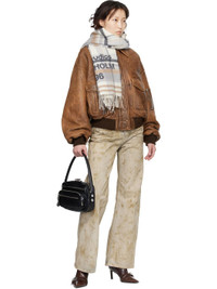 Rectangular wool-blend flannel scarf. · Check pattern throughout · Jacquard logo at face · Fringed detailing at ends · L72" x W16" Supplier color: White/Beige 98% wool, 2% nylon. Made in Italy 261129F028050