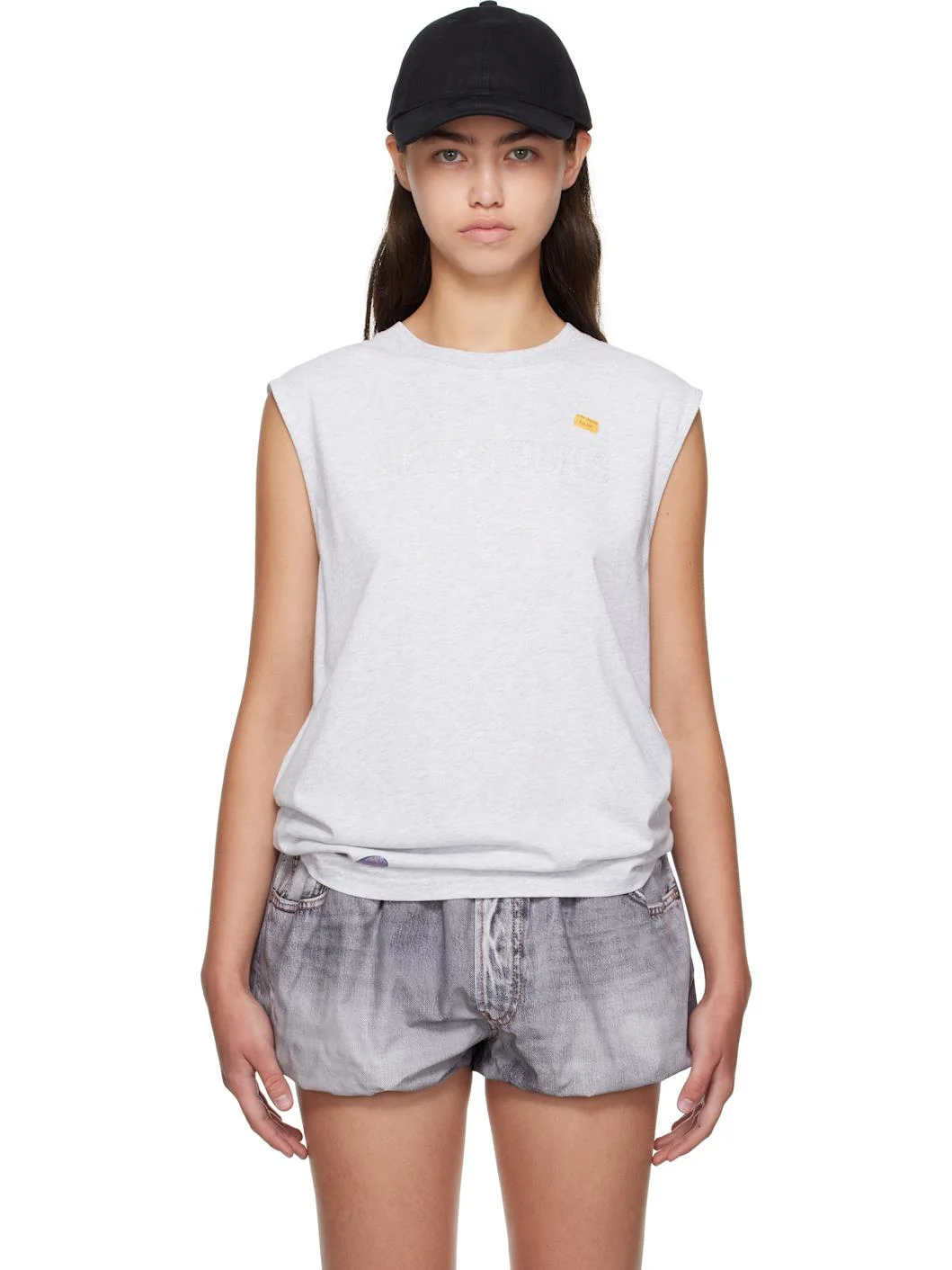 Organic cotton jersey tank top. · Rib-knit crewneck · Frayed logo appliques at chest · Logo graphics printed at front Supplier color: Grey melange 100% organic cotton. Made in Portugal 252129F111003