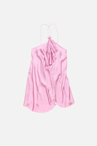 Halter dress is crafted from a fluid satin fabric and features a draped ruffle detailing at the front. Cut to a regular fit and above the knee length. - Regular fit - Above knee length - Straps with back silver-toned branded heart charm - Draped ruffle details - Model is 177 cm / 5'10 and wears a size 36 - Style ID: FN-WN-DRES001432 - Shell: 51% Viscose, 46% Preferred viscose, 3% Elastane