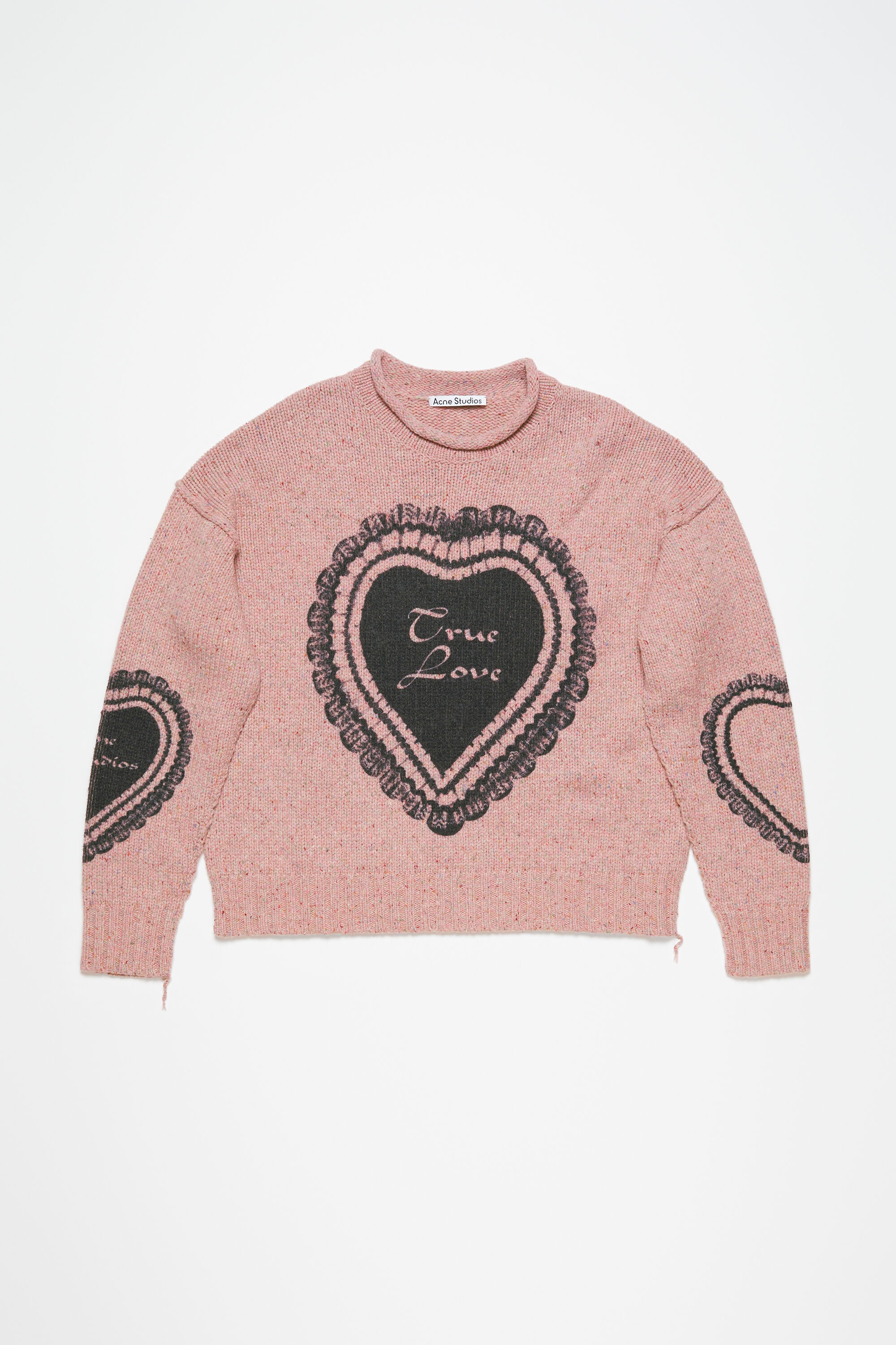Knit jumper features a seasonal printed animation on the front and sleeve crafted from a rich wool blend. Cut to a relaxed fit with dropped shoulders. - Relaxed fit - Dropped shoulders - Hip length - Raised neckline with rolled edges - Seasonal 'True love' animation on the front and sleeves - Ribbed cuffs and hem - Model is 174 cm / 5′9 and wears a size S - Style ID: FN-WN-KNIT000783 - Made with responsible wool and recycled nylon. - Shell: 80% Wool, 20% Nylon
