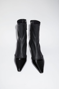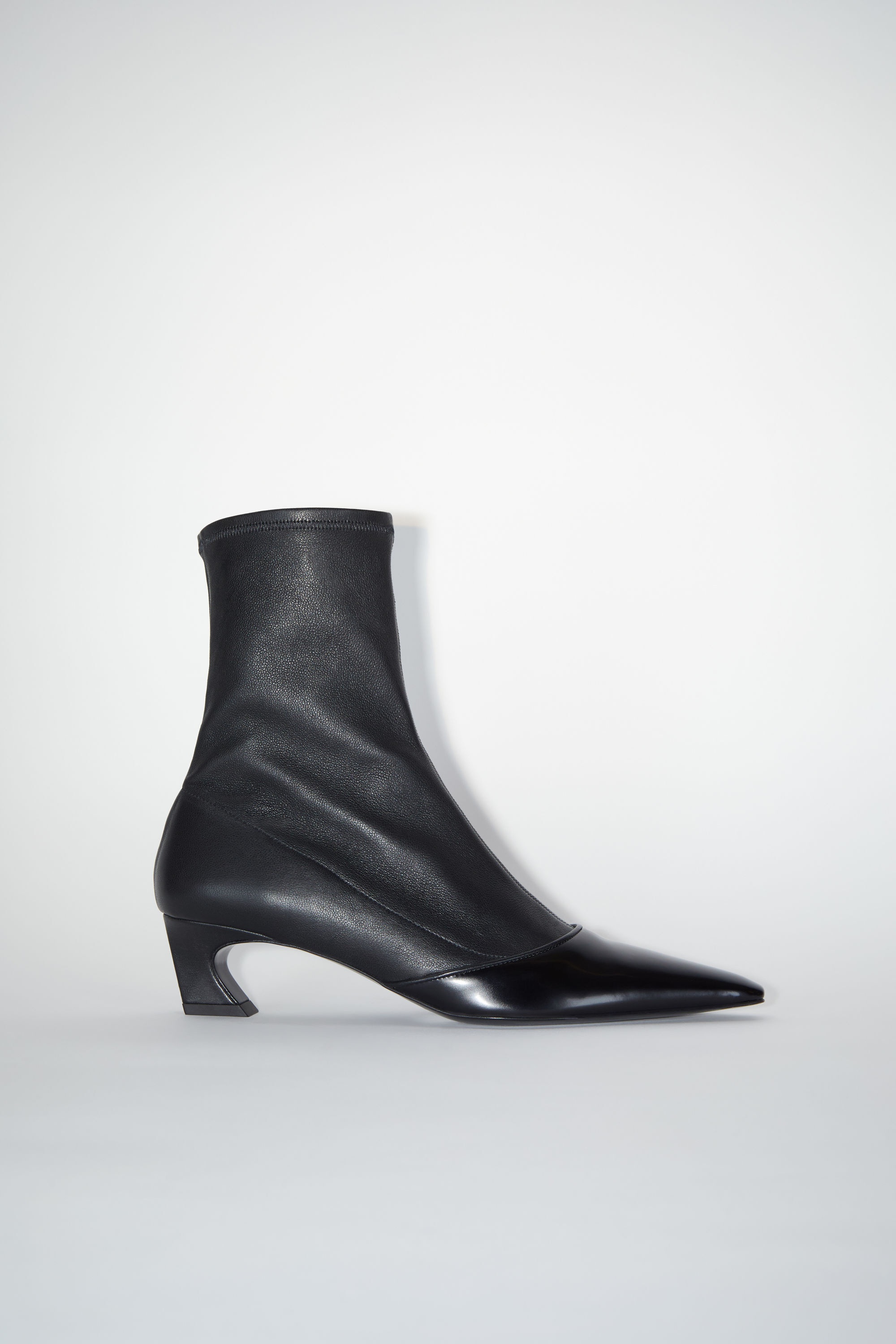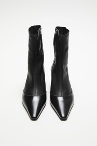 Ankle boots are crafted from leather with a semi-matt and a tonal glossy pointed-toe construction. Detailed with an Acne Studios logo. Complete with a zipper with a curved square heel. - Ankle length - Pointed-toe - Curved square heel - Smooth leather - Glossy toe detail - Acne Studios logo - Side zippered closure - Made in Italy - Heel height: 45mm - Style ID: FN-WN-SHOE000695 - Uppers: 75% Lamb leather, 25% Calf leather, Lining: 100% Lamb leather, Soles: 100% Calf leather