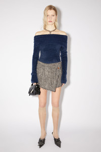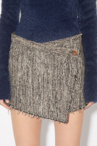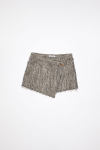 Acne Studios brown melange mini skirt features a wrap construction with overlapping button closure and 5-pocket denim style details. Crafted from wool blend herringbone. Cut to a regular fit with a mid-waist and short length. - Regular fit - Short length - Mid waist - 5-pocket denim construction - Overlapping button closure - Model is 180 cm / 5′11 and wears a size 36 - Style ID: FN-WN-SKIR000609 - Shell: 45% Wool, 23% Cotton, 22% Acrylic, 6% Nylon, 4% Polyester, Lining: 100% Viscose