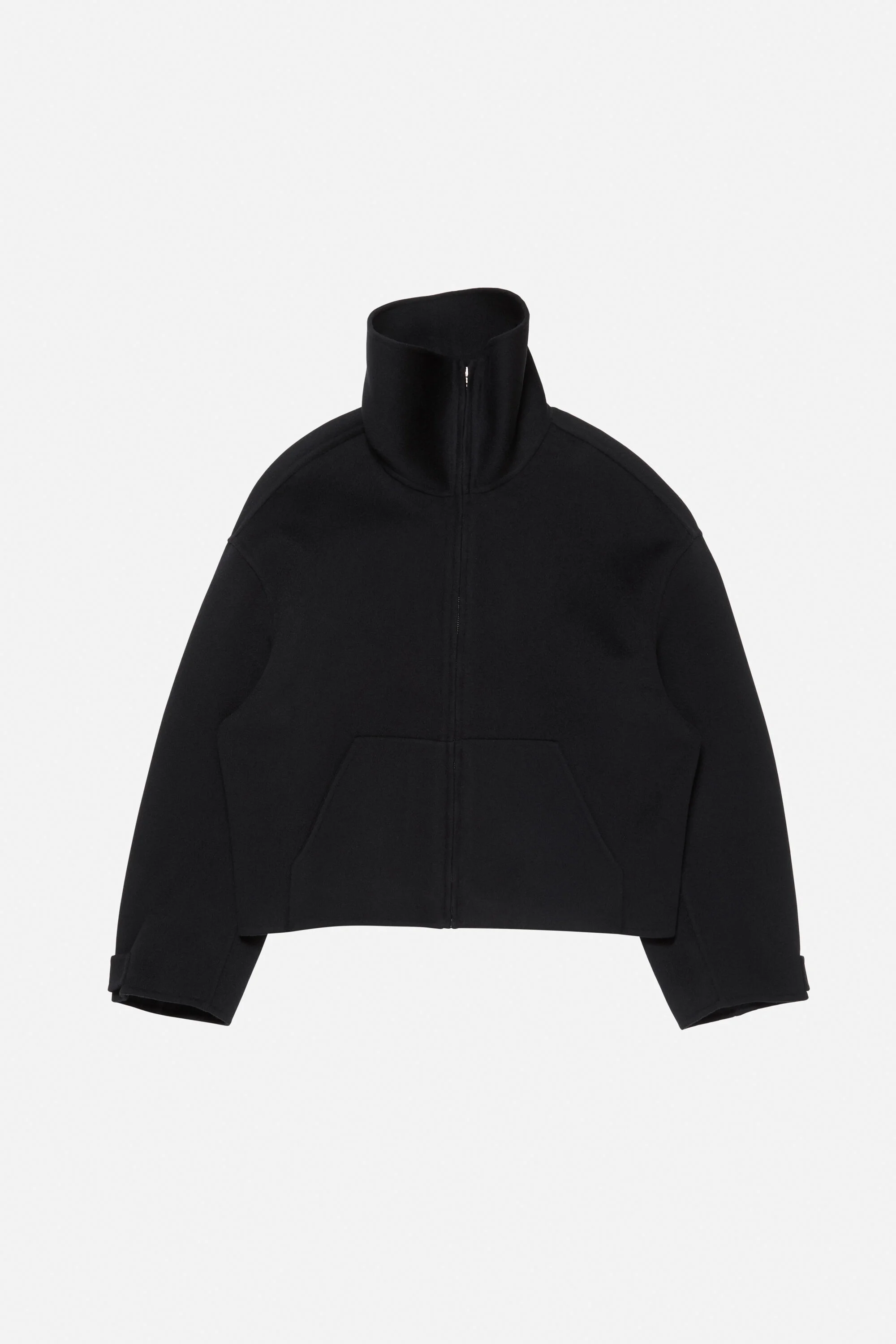 Double-splittable jacket with a high neckline, crafted from a brushed cashmere-wool blend for elevated softness. Features a two-way zip closure, front pockets, and tab details at the cuffs. Cut to a relaxed fit with relaxed sleeves and hip length. - Double-splittable jacket - Relaxed fit - Hip length - High neckline - Relaxed sleeves - Two-way zip closure - Front pockets - Tabs on cuffs - Model is 180 cm / 5'9 and wears a size 36 - Style ID: FN-WN-OUTW001085 - Shell: 10% Cashmere, 90% Wool, Lining: 100% Viscose