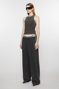 Sweatpants are cut to a regular fit with a low waist, wide leg and long length. Detailed with an Acne Studios logo print on the centre back. Complete with an elasticated waistband and internal drawcord. Crafted from fleece cotton with a faded garment-dyed finish. - Regular fit - Low waist - Wide leg - Long length - Elasticated waistband internal drawcord - Acne Studios logo print centre back - Side pocket - Model is 176 cm / 5′10 and wears a size S - Style ID: FN-WN-TROU001237 - Made from organically grown cotton. - Shell: 100% Cotton