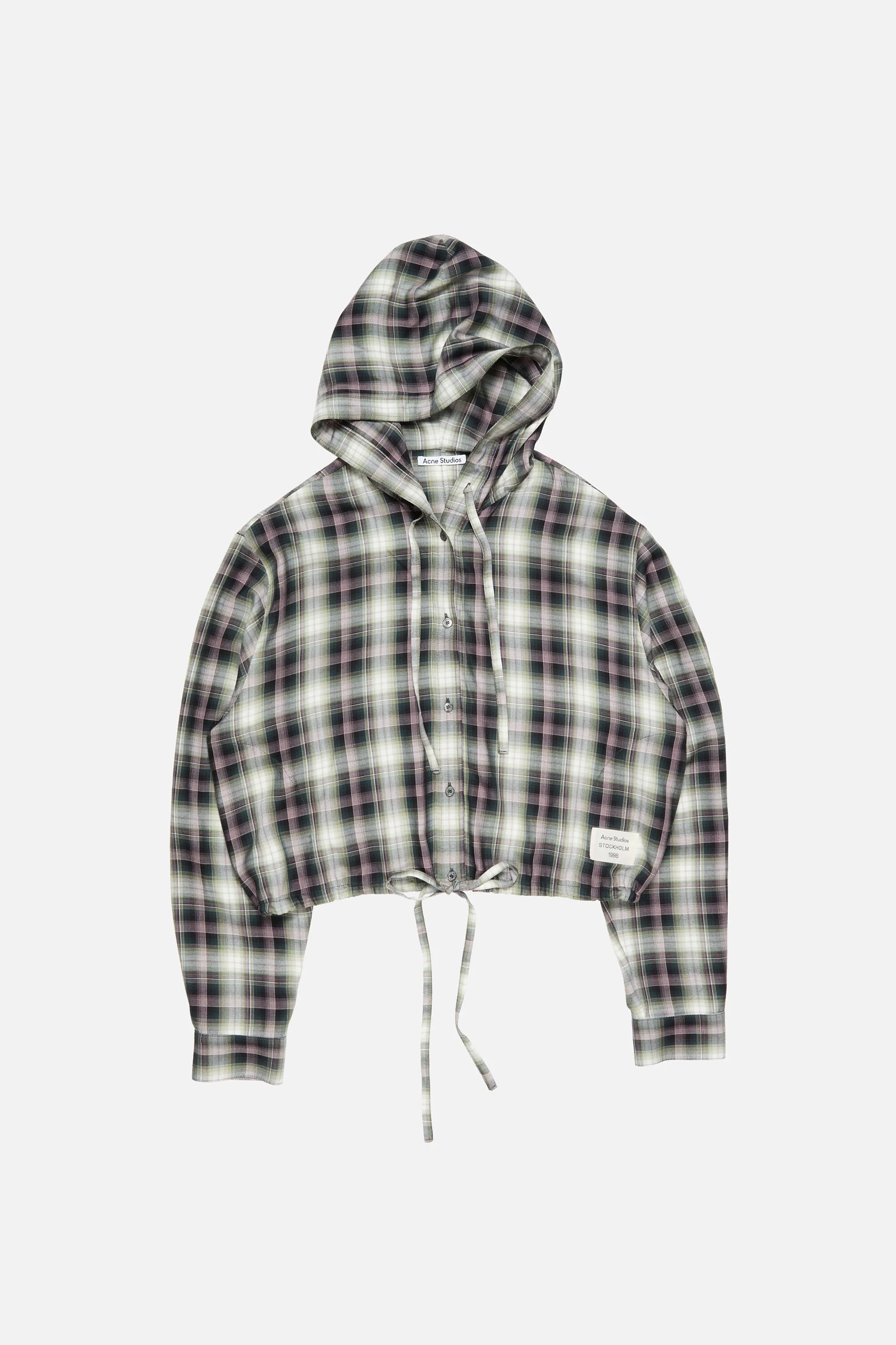 Hooded overshirt features a flannel check pattern and branded logo tab at the front. Designed with a centre front button-up closure and shirt cuffs. Complete with drawcords at the hood and hem and side seam pockets. Cut to a relaxed fit and hip length. - Relaxed fit - Hip length - Hooded with drawcords - Centre front button closure - Side seam pockets - Logo tab - Model is 177 cm / 5'8 and wears a size 36 - Style ID: FN-WN-BLOU001157 - Shell made from 100% LENZING™ ECOVERO™ - Shell: 100% Viscose