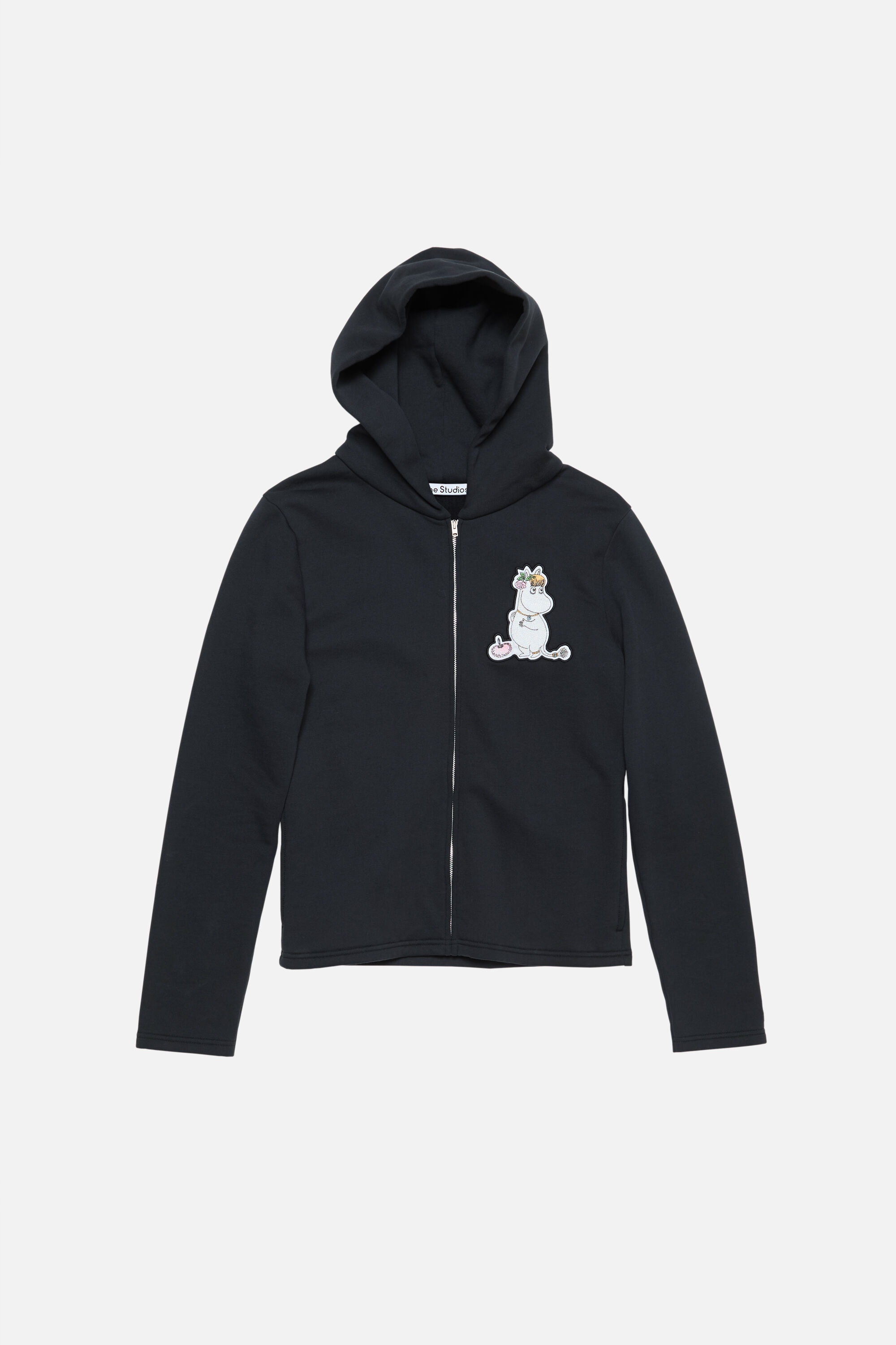 Hooded zipper sweater from soft cotton, adorned with © Moomin Characters ™ animation and branded animation on the back. Cut to a regular unisex fit and below hip length. - Acne Studios x Moomin Collaboration - Animation featuring © Moomin Characters ™ - Regular unisex fit - Below hip length - Hooded - Log and distressed details - Zipper closure - Side seam pockets - Ribbed cuffs and hem - Female model is 178 cm / 5′10″ and wears a size XS - Male model is 187 cm / 6'2 and wears a size M - Style ID: FA-UX-SWEA000199 - Shell: 100% Cotton