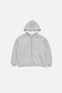 Zip-up sweatshirt with a hood, made from soft fleece fabric that has a worn, vintage look. Features a relaxed, slouchy shape and a soft lining for comfort. Finished with a logo design on the back. Cut for a relaxed fit and hip length. - Relaxed fit - Hip length - Hood - Logo design on back - Fully lined - Kangaroo pockets - Ribbed cuffs and hem - Front zip closure - Model is 178 cm / 5'8 and wears a size S - Style ID: FN-WN-SWEA000263 - Shell: 41% Polyester, 59% Cotton, Lining: 100% Polyester