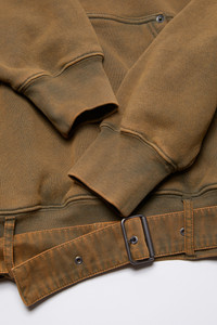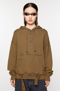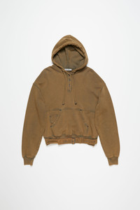 Hoodie is crafted from jersey cotton with a garment-dyed faded finish, adorned with a blurred Acne Studios logo at the hood. Constructed with an adjustable belt at the hem and includes a front kangaroo pocket. - Regular fit - Belt construction at hem - Hooded with drawcord - Blurred logo at hood - Garment-dyed faded finish - Button-up placket - Kangaroo pocket - Model is 176cm/ 5'9.5 and wears a size S - Garment dye is unique, each item may differ slightly. - Style ID: FN-WN-SWEA000241 - Shell: 100% Cotton, Contrast: 100% Cotton