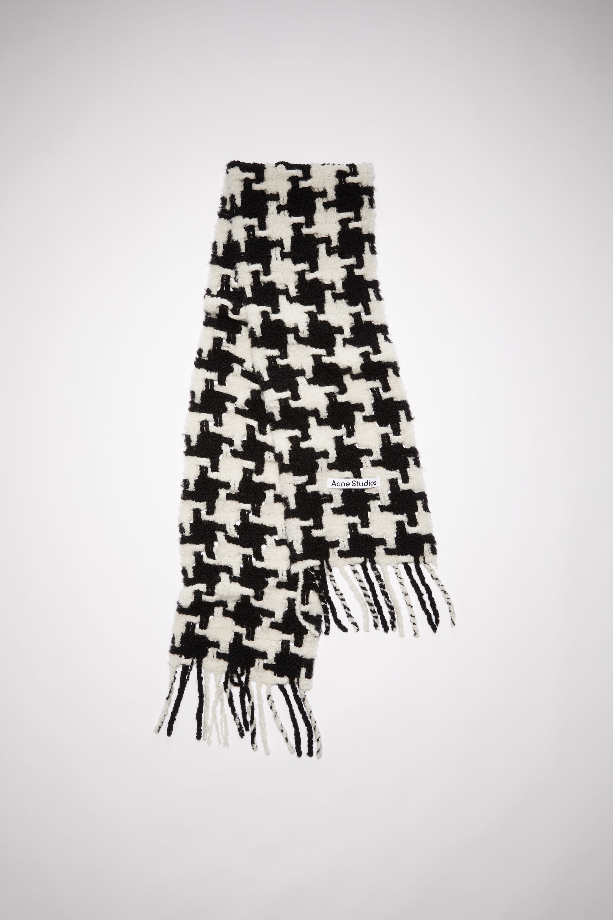 Scarf features an all-over houndstooth scarf, crafted from a chunky alpaca/nylon blend with fringed ends. - Houndstooth - Fringed ends - Acne Studios label - Measurements including fringe: 210 cm lenght; 25 cm width - Fringe measurements: 15 cm approx - Style ID: FN-UX-SCAR000169 - Main material: 90% alpaca, 10% nylon