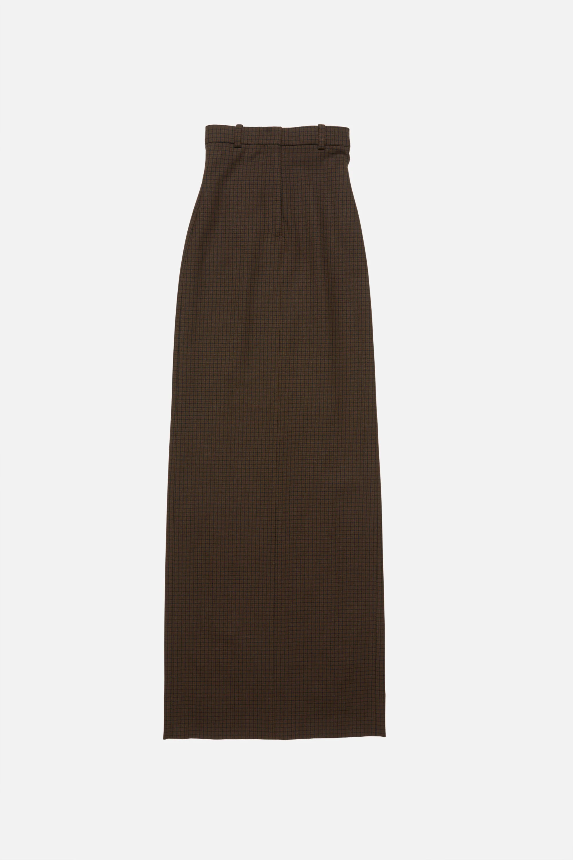 Tailored skirt crafted from a soft-stretch wool blend with an all-over check pattern. Designed with an ultra high waist, back slit, and long length. Cut to a fitted silhouette with a soft hand and comfortable two-way stretch. - Fitted - Ultra high waist - Long length - Back slit - Seasonal check pattern - Model is 178 cm / 5'8 and wears a size 36 - Style ID: FN-WN-SKIR000881 - Made in Italy - Shell: 3% Elastane, 97% Wool, Lining: 33% Polyester, 67% Acetate