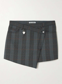 EDITORS'NOTES If Y2K is your style language, look no further than Acne Studios' mini skirt. Made from houndstooth wool-blend, it has an asymmetric crossover front. A silver-tone heart-shaped pendant swings from below the belt loop. SIZE & FIT Model measurements: - Fits large to size, take one size smaller than normal - Mini-length, designed to be worn at the waist - Mid-weight, non-stretchy fabric - Model is 175cm/ 5'9" and is wearing a FR 36 - Bust: 81cm/ 32" - Waist: 64cm/ 25" - Hip: 89cm/ 35" DETAILS & CARE - Multicolored wool-blend - Partially concealed button fastenings at front - 51% wool, 49% polyester; lining: 100% viscose - Dry clean