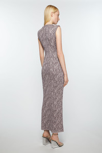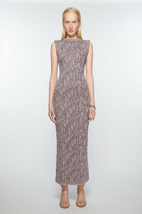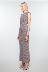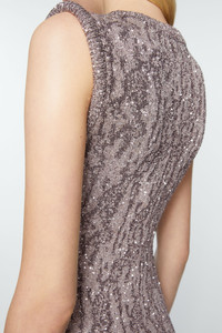 Sleeveless dress is cut to a fitted fit and long length. Crafted from a sequin yarn and lurex jacquard with a semi-sheer finish. - Fitted fit - Long length - Sleeveless - Sequin and jacquard details - Model is 176 cm / 5′10 and wears a size S - Style ID: FN-WN-DRES001193 - Delicate materials may fray if not handled carefully. - Shell: 87% Nylon, 13% Metallized fibre, Sequins: 100% Polyester