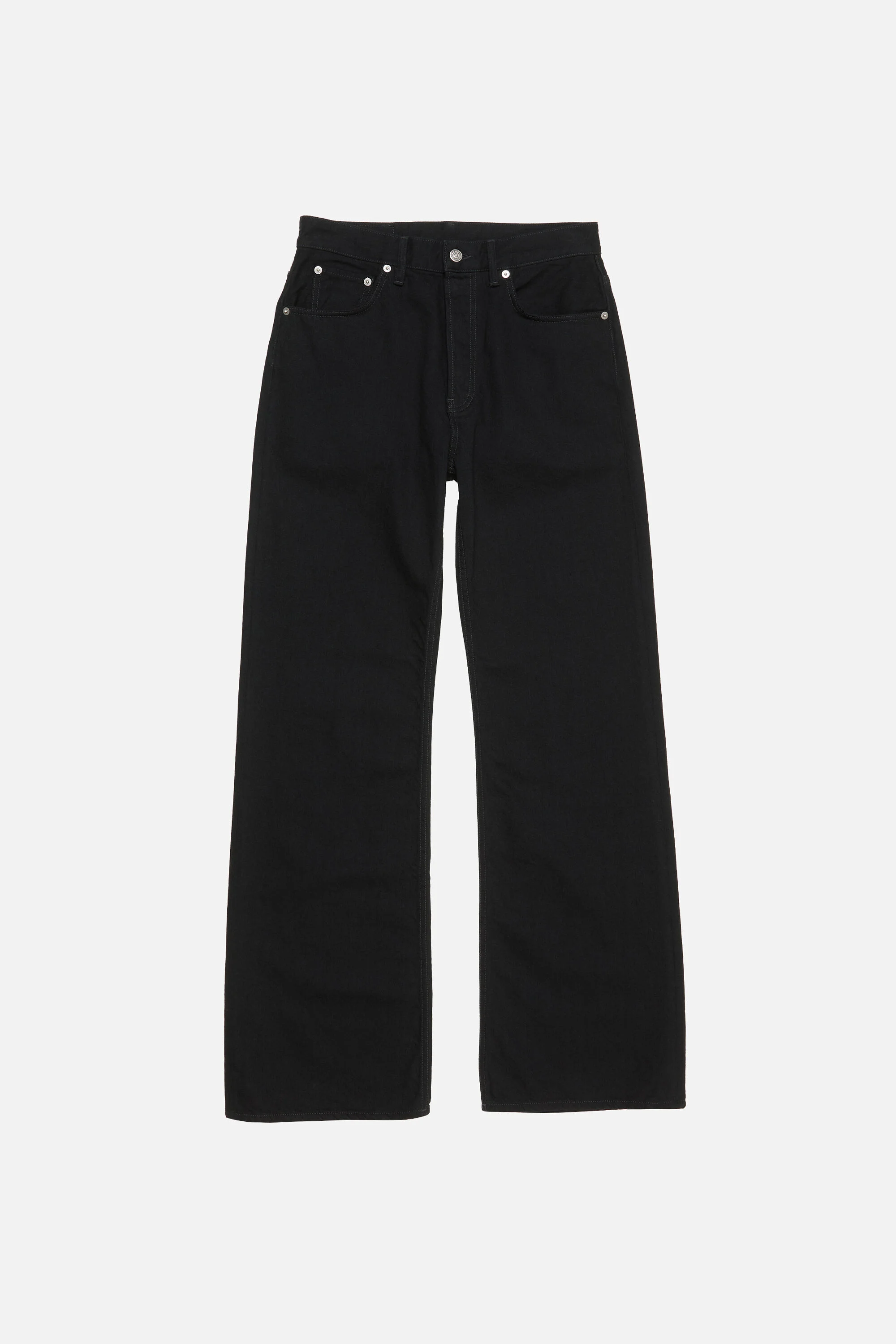 Jeans crafted from denim in a black wash. 2021 jeans are cut to a regular fit with a mid-rise waist, wide straight legs with a slight flare from the knee, and a long length. - Regular fit - Mid waist - Wide straight leg - Long length - 5-pocket construction - Button fly - Model is 179 cm / 5′11 and wears a size 27/34 - Style ID: Acne Studios 2021F Black/Black - Made from organically grown cotton - Shell: 100% Cotton, Patch: 100% Cow leather