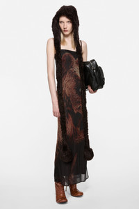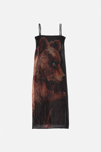 Strap dress crafted from sheer jersey with a seasonal bear print. Features an underlayer, adjustable detachable straps, and a side slit up the leg. Cut to a regular fit and ankle length. - Regular fit - Ankle length - Adjustable detachable straps - Seasonal bear print - Model is 181 cm / 5'9 and wears a size S - Style ID: FN-WN-DRES001610 - Shell: 100% Nylon, Lining: 20% Elastane, 80% Nylon