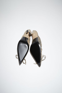 Acne Studios beige/green mule is crafted from leather, details with a lace-up detailing at the front. Complete with a pointed toe and high heel. - Heel mule - Lace-up detail - Pointed toe - Heel measurement: 100 mm - Style ID: FN-WN-SHOE000837 - Uppers: 100% Lamb leather, Lining: 100% Lamb leather, Soles: 80% Cow leather, 20% Rubber