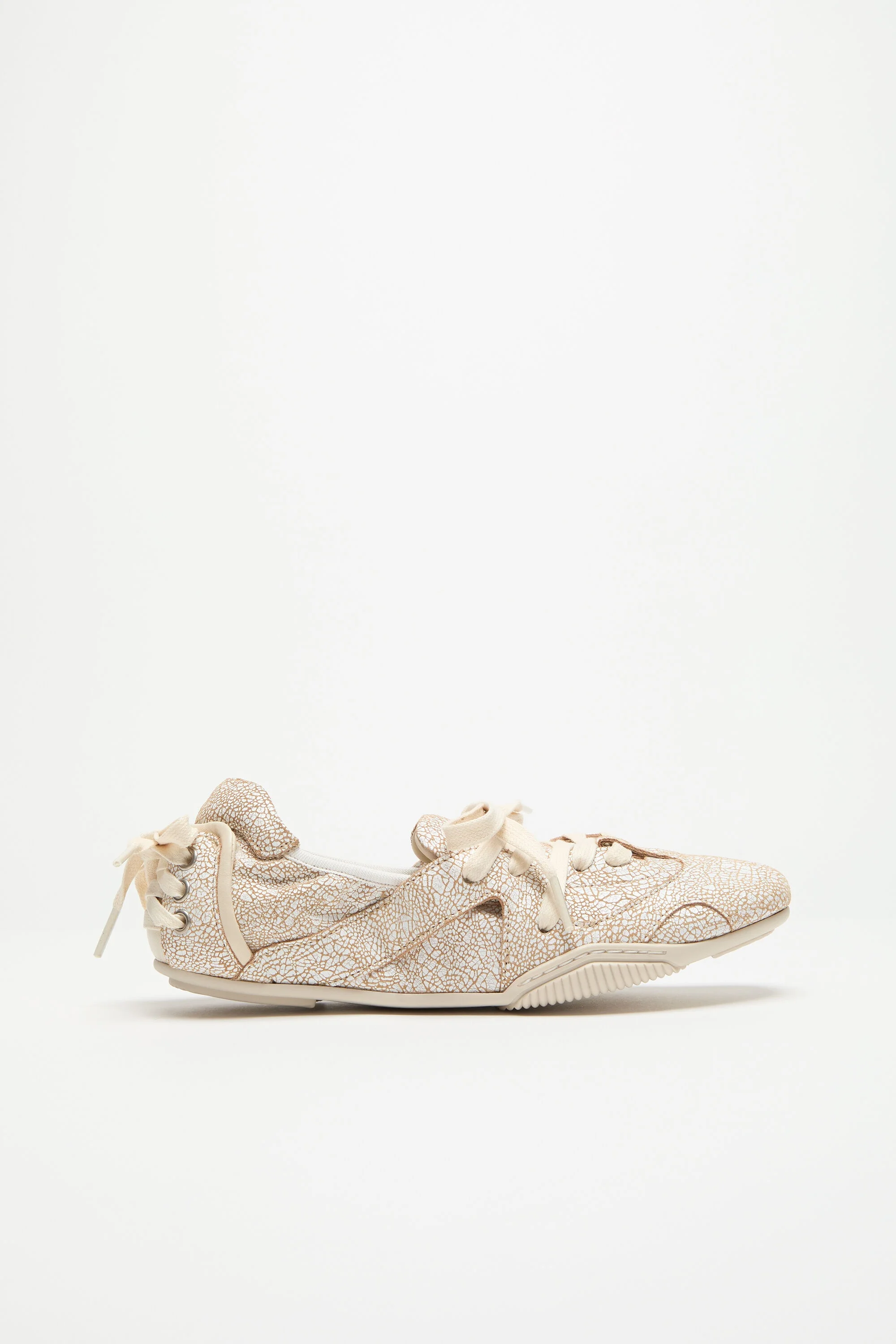 Lace-up shoes reimagine the ballerina silhouette crafted in leather with a cracked finish, detailed decorative lacing at the back and seamless rubber soles. - Denim-inspired finishes - Lace-up at the front - Decorative lacing at the back - Sole height 0.5 cm - Style ID: FN-WN-SHOE000940 - Uppers: 80% Calf leather, 20% Lamb leather, Lining: 100% Preferred lamb leather, Soles: 100% Thermoplastic polyurethane