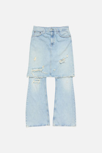 Layered trousers crafted from rigid denim, featuring a skirt layer over a trouser underlayer. Completed with front and back pockets, a button-and-zip fly, and a leather logo patch on the back waistline. Cut to a regular fit with a wide, slightly flared leg. - Layered trousers - Regular fit - Wide, slightly flared leg - Skirt layer over a trouser underlayer - Front and back pockets - Button-and-zip fly - Leather logo patch - Model is 178 cm / 5'8 and wears a size 36 - Style ID: FN-WN-TROU001606 - Made with organically grown cotton - Shell: 100% Cotton, Patch: 100% Cow leather