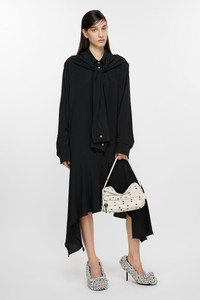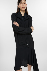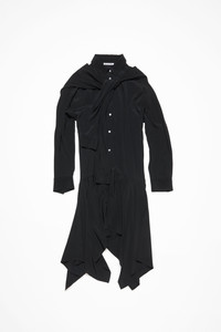 Long sleeve dress, features a layering construction with a tie-up sleeve scarf across the shoulder and asymmetric skirt. Crafted from a fluid silk blend fabric. Cut to a regular fit. - Regular fit - Mid-length - Layered construction - Sleeve scarf detail - Button-up closure - Asymmetric skirt - Female model is 177 cm / 5'10 and wears a size 36 - Style ID: FN-WN-DRES001451 - Shell: 62% Acetate, 38% Silk