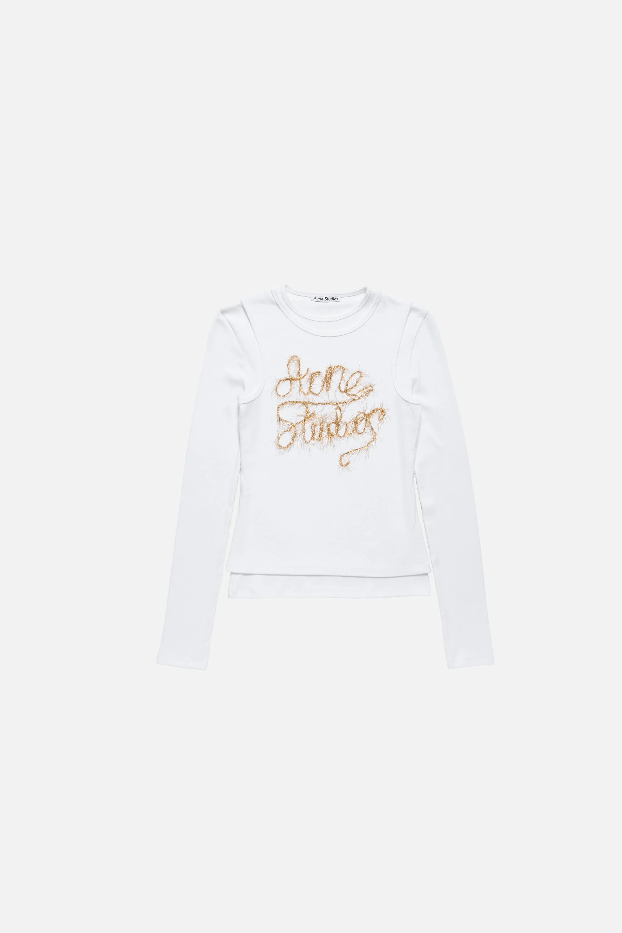 Long-sleeve crewneck T-shirt with a layered construction, crafted from a soft cotton blend. Designed with a tank top–inspired outer layer and finished with a metallic embroidered logo across the chest. Cut to a fitted silhouette. - Fitted - Layered construction - Embroidered logo - Crewneck - Long-sleeve - Model is 180 cm / 5'9 and wears a size S - Style ID: FN-WN-TSHI000822 - Shell: 3% Elastane, 97% Cotton, Embroidery: 45% Metallic fiber, 55% Nylon