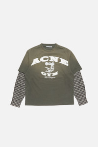Crewneck T-shirt featuring a checked shirting underlayer. Crafted from organic midweight jersey with a subtly irregular texture and finished with a seasonal logo print on the front. Cut to a relaxed unisex fit. - Relaxed fit - Crewneck T-shirt - Checked shirting underlayer - Seasonal logo print - Female model is 180 cm / 5'9 and wears a size XS - Male model is 186 cm / 6'1 and wears a size M - Style ID: FN-UX-TSHI000166 - Made from organically grown cotton - Shell: 100% Cotton, Contrast: 100% Cotton