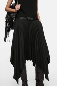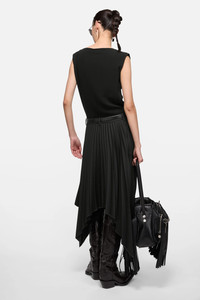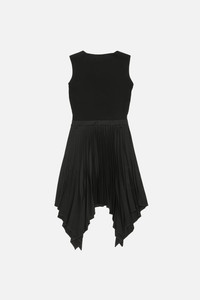 Sleeveless midi dress with layered construction, featuring a pleated crepe skirt with belt loops, side pockets and an asymmetrical hem. Cut to a regular fit and mid-calf length. - Regular fit - Mid-calf length - Layered construction - Pleated crepe skirt with belt loops - Asymmetrical hem - Model is 180 cm / 5'9 and wears a size 36 - Style ID: FN-WN-DRES001624 - Shell: 55% Polyester, 45% Wool, Contrast: 100% Viscose