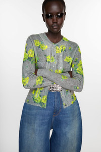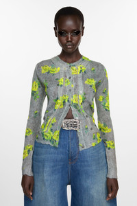 Cardigan features a layered design with buttoned placket detailing and functional button-up closure. Adorned with a seasonal print, crafted in a mohair blend with an overwashed unique hand-feel. Cut to a fitted fit and waist length. - Fitted fit - Waist length - Button-up closure - Layered construction - Seasonal print - Female model is 178 cm / 5'10 and wears a size M - Style ID: FN-WN-KNIT000842 - Shell: 55% Responsible mohair, 30% Recycled nylon, 15% Responsible wool