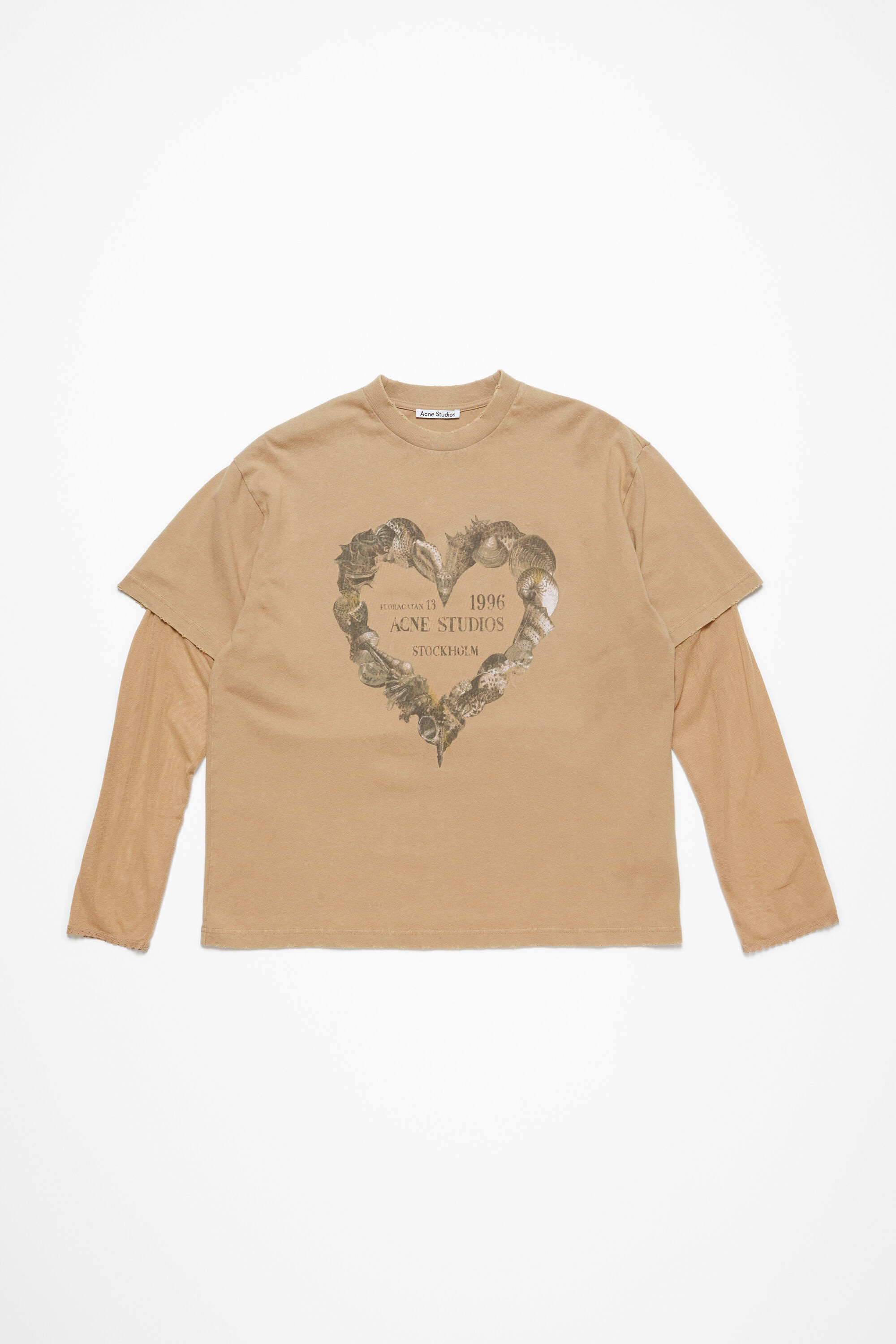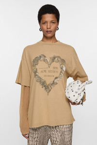 T-shirt is cut to a relaxed fit. Detailed with under-layer mesh long sleeves and distressed neckline, cuffs and hem. Adorned with a seasonal branded print on the centre front. - Relaxed fit - Under layer sleeves - Acne Studios print - Distressed details at the neckline, cuffs and hem - Model is 180 cm / 5'11 and wears a size S - Style ID: FN-WN-TSHI000735 - Shell: 100% Organic cotton, Contrast: 100% Nylon