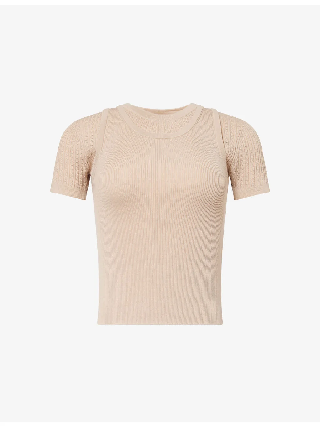 PRODUCT DETAILS - Acne Studios wool-blend top - 55% wool, 45% polyester - Fitted, round neck, short sleeves, layered vest top, pointelle and rib knit, ribbed trims - Hand wash - Made in Portugal - True to size - Model is 5ft 10in/1.78m and wears a size small - Lightweight, stretchy Ref: R04582921