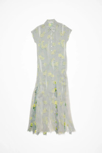 Dress features seasonal flower artwork, adorned with shredded cuts and double-layered mesh construction. Designed with a polo-style neckline and short sleeves. Cut to a relaxed fit and long length. - Relaxed fit - Long length - Polo neckline - Double-layered construction - Flower artworks - Distressed details - Model is 180 cm / 5'11 and wears a size 36 - Style ID: FN-WN-DRES001454 - Shell: 51% Recycled polyester, 49% Polyester, Contrast: 100% Recycled polyester