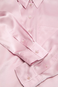 Button-up shirt blouse crafted from lightweight, fluid satin fabric, featuring constructed scarf detailing. Cut to a relaxed fit and hip length. - Relaxed fit - Constructed scarf detail - Fluid satin fabric - Hip length - Button-up closure - Model is 179 cm / 5'11" and wears a size 36 - Style ID: FN-WN-BLOU001206 - Shell: 97% Viscose, 3% Elastane