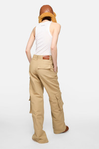 Trousers are crafted from smooth cotton satin with a double-layered structure. Features cargo pockets and a front zipper at the leg that allows the silhouette to be widened. Cut to a regular fit and mid waist. - Regular fit - Long leg - Mid waist - Cargo pockets - Front zip that splits leg - Model is 178 cm/ 5'8" and wears a size 36 - Style ID: FN-WN-TROU001486 - Made from organically grown cotton - Shell: 100% Cotton