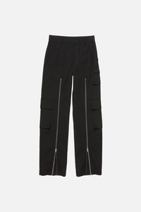 Trousers are crafted from smooth cotton satin with a double-layered structure. Featuring cargo pockets and a front zipper at the leg that allows the silhouette to be widened. Cut to a regular fit and mid waist. - Regular fit - Long leg - Mid waist - Cargo pockets - Front zip that splits leg - Model is 178 cm/ 5'8 and wears a size 36 - Style ID: FN-WN-TROU001486 - Made from organically grown cotton - Shell: 100% Cotton