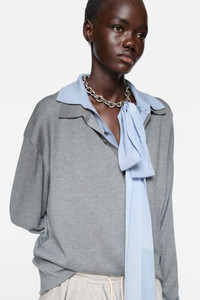 Long-sleeve polo crafted from lightweight silky knit. Features a double-layered construction and a shirt-style collar, finished with a logo patch at the back neckline. Cut for a relaxed fit and hip-length silhouette. - Relaxed fit - Silk blend - Hip length - Contrasting shirt collar - Logo patch on back - Model is 178 cm/ 5'8 and wears a size S - Style ID: FN-WN-KNIT000859 - Made from certified wool according to the Responsible Wool Standard - Shell: 70% Silk, 10% Cashmere, 20% Wool