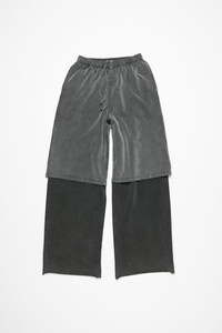 Layered trousers feature a top layer crafted from fleece cotton, a garment-dyed finish, and fluid long-length trousers as an under-layer. Detailed with logo embroidery at the back. Cut to a loose fit and long length. - Loose fit - Mid waist - Elasticated waistband with drawcord - Long length - Double layered construction - Logo embroidery - Side pockets - Model is 179 cm / 5'11 and wears a size S - Style ID: FN-WN-TROU001374 - Shell: 100% Organic cotton, Contrast: 100% Organic cotton
