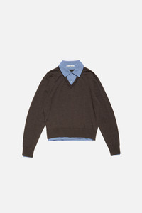 Short-sleeve wool knit with a polo collar, featuring a layered construction with a checked underlayer and ribbed trim. Cut to a regular fit with a below-waist length. - Regular fit - Below-waist length - Layered construction - Checked underlayer - Ribbed trim - Model is 178 cm / 5'8 and wears a S - Style ID: FN-WN-KNIT000967 - Made from responsible wool. Certified by Control Union, CU-1024001. - Shell: 100% Wool, Contrast: 100% Wool