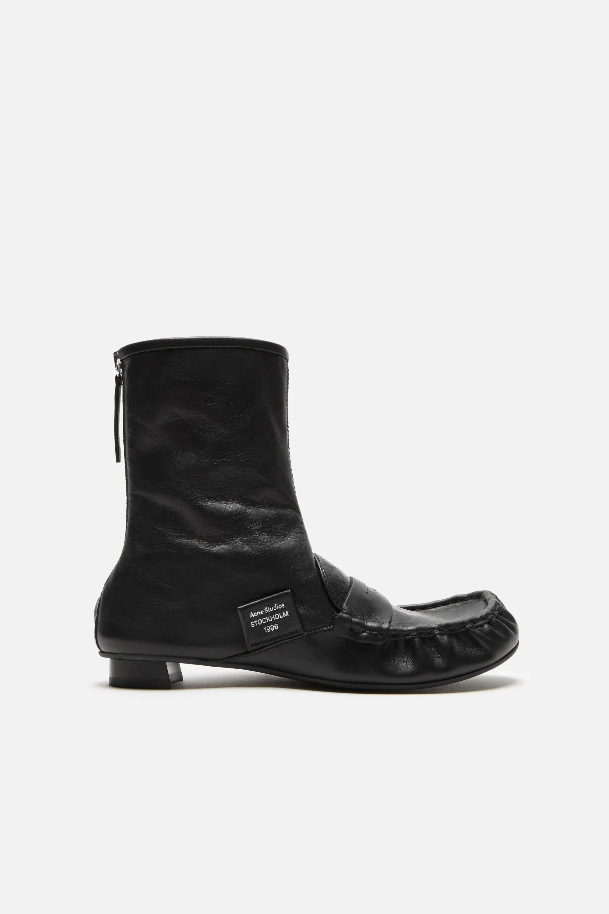 Ankle boot crafted from soft calf leather with a vintage finish, featuring a saddle strap across the front. Detailed with a back zip and raised stitching across the instep. Set on a flexible polyurethane sole. - Ankle boot - Saddle strap - Zip closure - Heel height: 25 mm - Sole height: 5 mm - Style ID: FN-WN-SHOE001082 - Uppers made from leather from a Leather Working Group (LWG) certified tannery with Silver rating - Uppers: 100% Calf leather, Lining: 32% Nylon, 8% Elastane, 60% Polyester, Soles: 100% Thermoplastic polyurethane