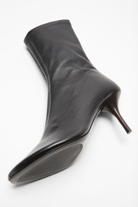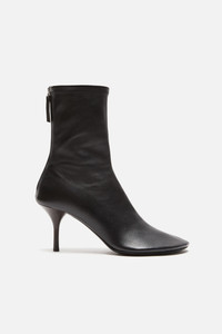A sleek ankle boot made from flexible stretch leather, designed for a close, sock-like fit. Features matching center seam stitching, a metal zip at the back with a branded pull tab, and a structured sole. - Ankle boot - Zip closure - Branded pull tab - Heel height: 75 mm - Style ID: FN-WN-SHOE001080 - Uppers: 100% Lamb leather, Lining: 20% Elastane, 80% Polyester, Soles: 40% Thermoplastic polyurethane, 60% Cow leather