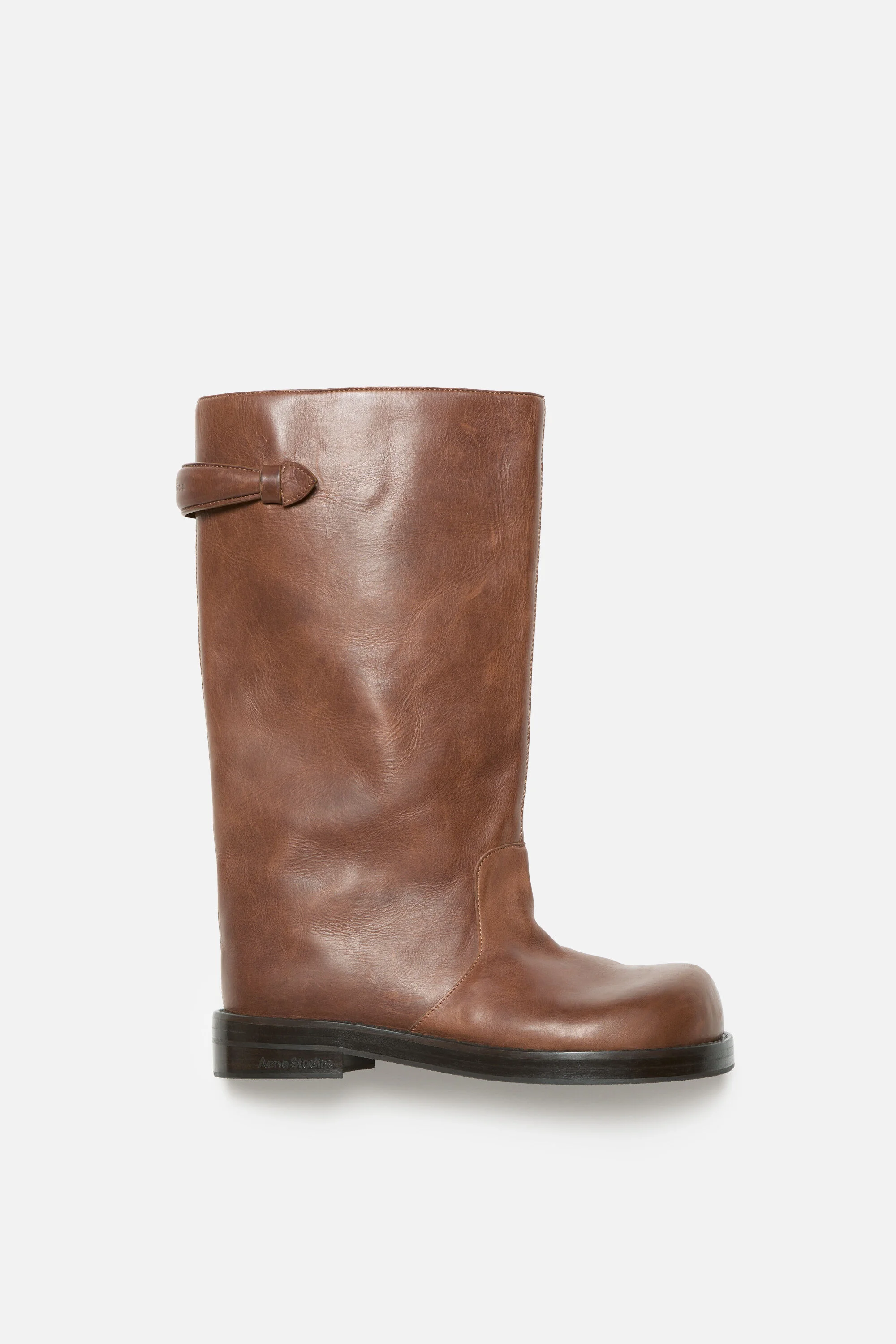 High-shaft boots crafted from thick calf leather with a vintage finish. Designed with a debossed branded handle at the back and a rounded toe. Complete with a bold welted construction and stacked heel. - High-shaft boots - Debossed branded handle - Rounded toe - Heel height: 20 mm - Sole height: 10 mm - Style ID: FN-WN-SHOE001124 - Uppers: 100% Calf leather, Lining: 100% Calf leather, Soles: 100% Thermoplastic polyurethane
