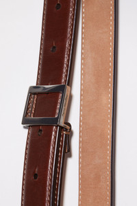 Belt is crafted from leather and features a silver-toned square buckle detailed with a logo engraving. - Silver-toned square buckle with logo engraving - Debossed logo on the inner part of the belt - Measurements: 2,5 cm width - Style ID: FN-UX-ACCS000116 - Shell: 100% Calf leather