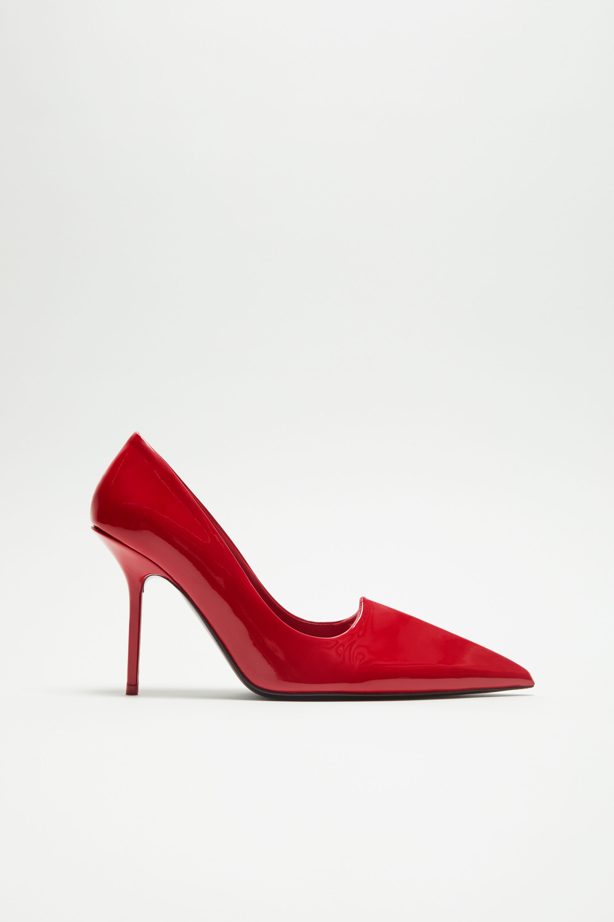Pump shoe is characterised by a sculptural peak throughout the toe cap. Crafted patent leather, complete with a pointed toe and thin high heel. - Classic pump construction - Pyramid peak throughout the toe cap - Pointed toe - Heel measurement: 10 cm - Style ID: FN-WN-SHOE000904 - Uppers: 100% Calf leather, Lining: 100% Lamb leather, Soles: 100% Cow leather