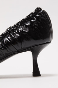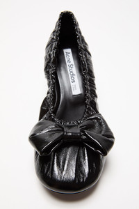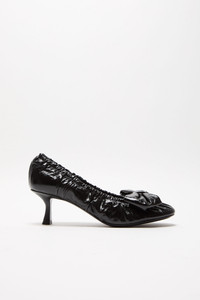 Shoes feature a ballet with a small heel design, detailed with a bow at the front and gathered edges. Crafted in nappa leather with a shiny finish. - Round toe - Small heel - Bow detail - Gathered edge - Sole height: 5 mm - Heel height: 60 mm - Style ID: FN-WN-SHOE000992 - Uppers: 100% Lamb leather, Lining: 100% Lamb leather, Soles: 60% Cow leather, 40% Rubber