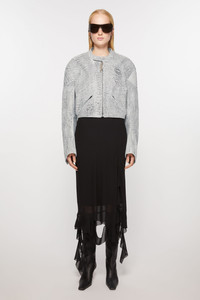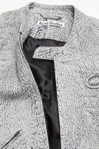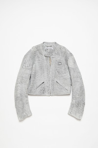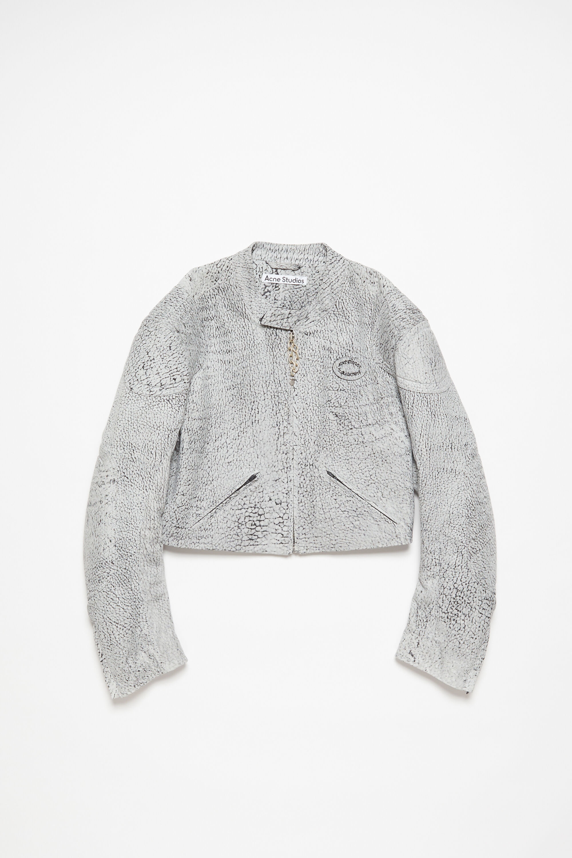 Leather jacket is cut to a relaxed silhouette with dropped shoulders and below-waist length. Crafted from leather with a cracked finish. Complete with motorcycle-style construction, detailed with a branded tab on the chest. - Relaxed fit - Dropped shoulders - Hip length - Cracked leather - Acne Studios logo patch - Front zipper closure - Welt pockets - Fully lined - Model is 179 cm / 5'11 and wears a size 36 - Style ID: FN-WN-LEAT000235 - Made from high-quality leather that naturally varies in shade and texture. Each garment will have a unique leather finish. - Shell: 100% Lamb leather, Lining: 100% Viscose