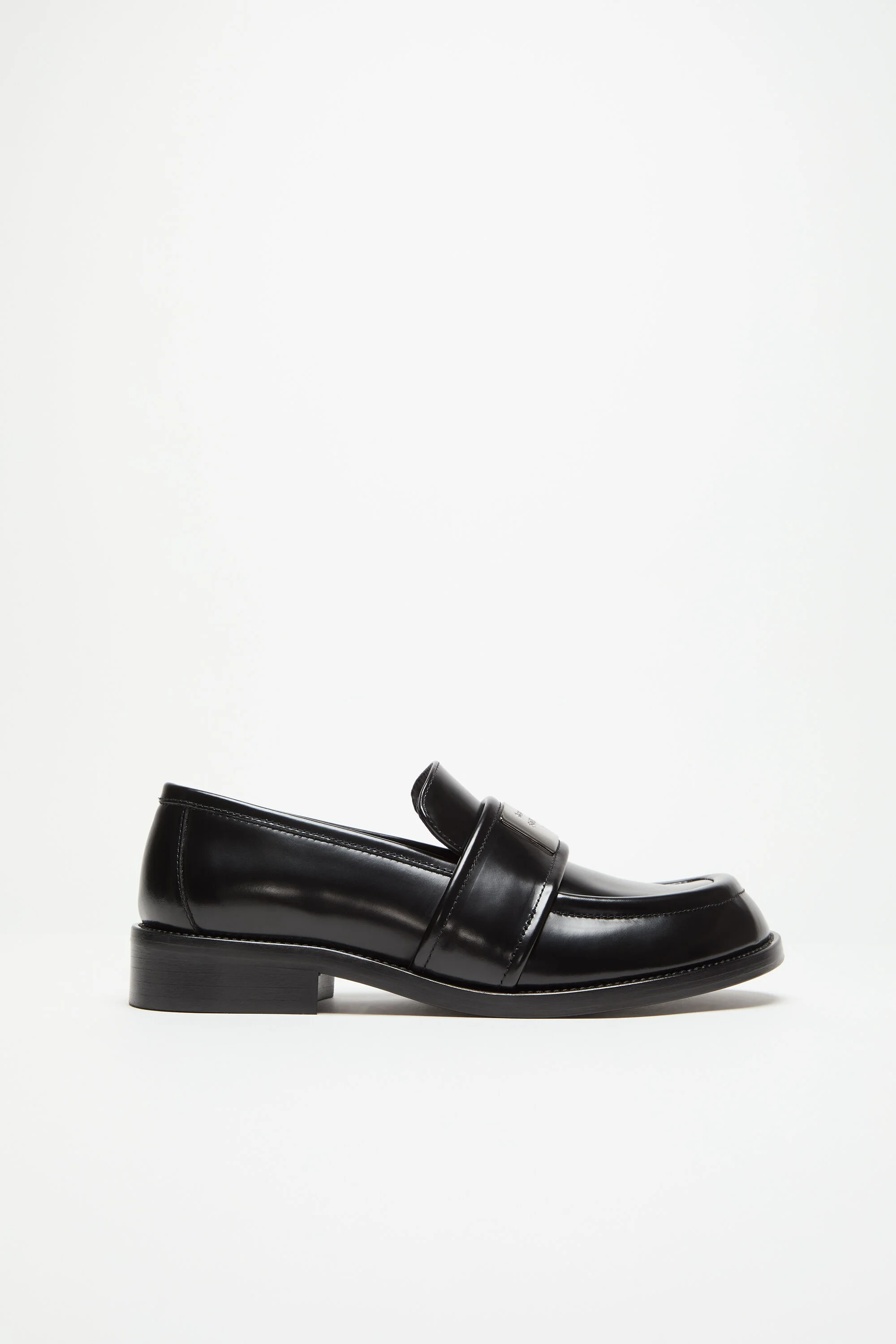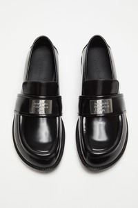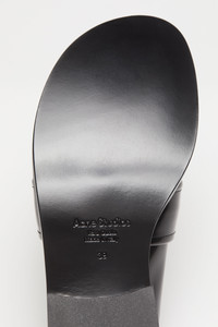 Loafers reimagined in leather, adorned with a logo silver-toned plaque at the front. Complete with a curved toe and short heel. - Acne Studios logo plaque - Curved toe - Sole height: 10 mm - Heel height: 30 mm - Style ID: FN-WN-SHOE000944 - Uppers: 100% Preferred calf leather, Lining: 100% Preferred calf leather, Soles: 100% Preferred cow leather