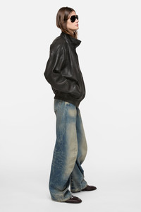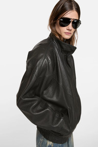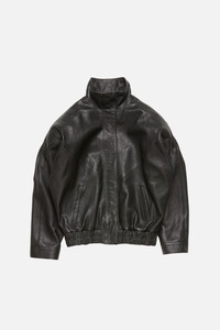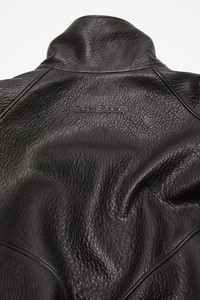 Leather jacket crafted from full-grain lamb leather with a funnel neck collar, welt pockets with hidden zips, front hidden snap button closure, and an elasticated hem. Complete with an embossed logo at the back neckline. Cut to a relaxed fit with regular sleeves and a below-waist length. - Leather jacket - Relaxed fit - Regular sleeves - Below-waist length - Funnel neck collar - Welt pockets with hidden zips - Front hidden snap button closure - Elasticated hem - Embossed logo - Model is 177 cm / 5'8 and wears a size S - Style ID: RW-WN-LEAT000001 - Shell made from leather from a Leather Working Group (LWG) certified tannery with Gold rating - Shell: 100% Lamb leather, Lining: 100% Viscose
